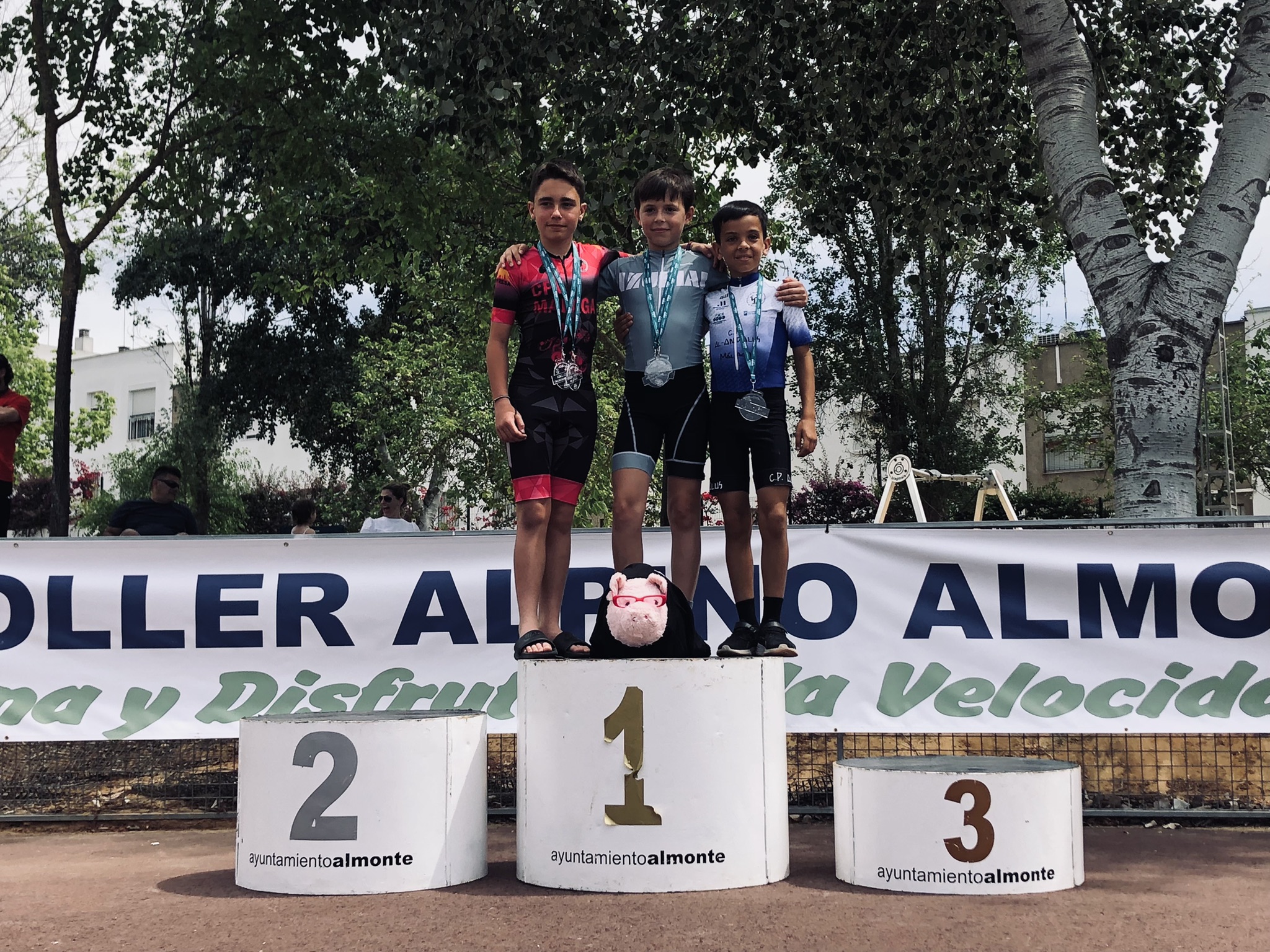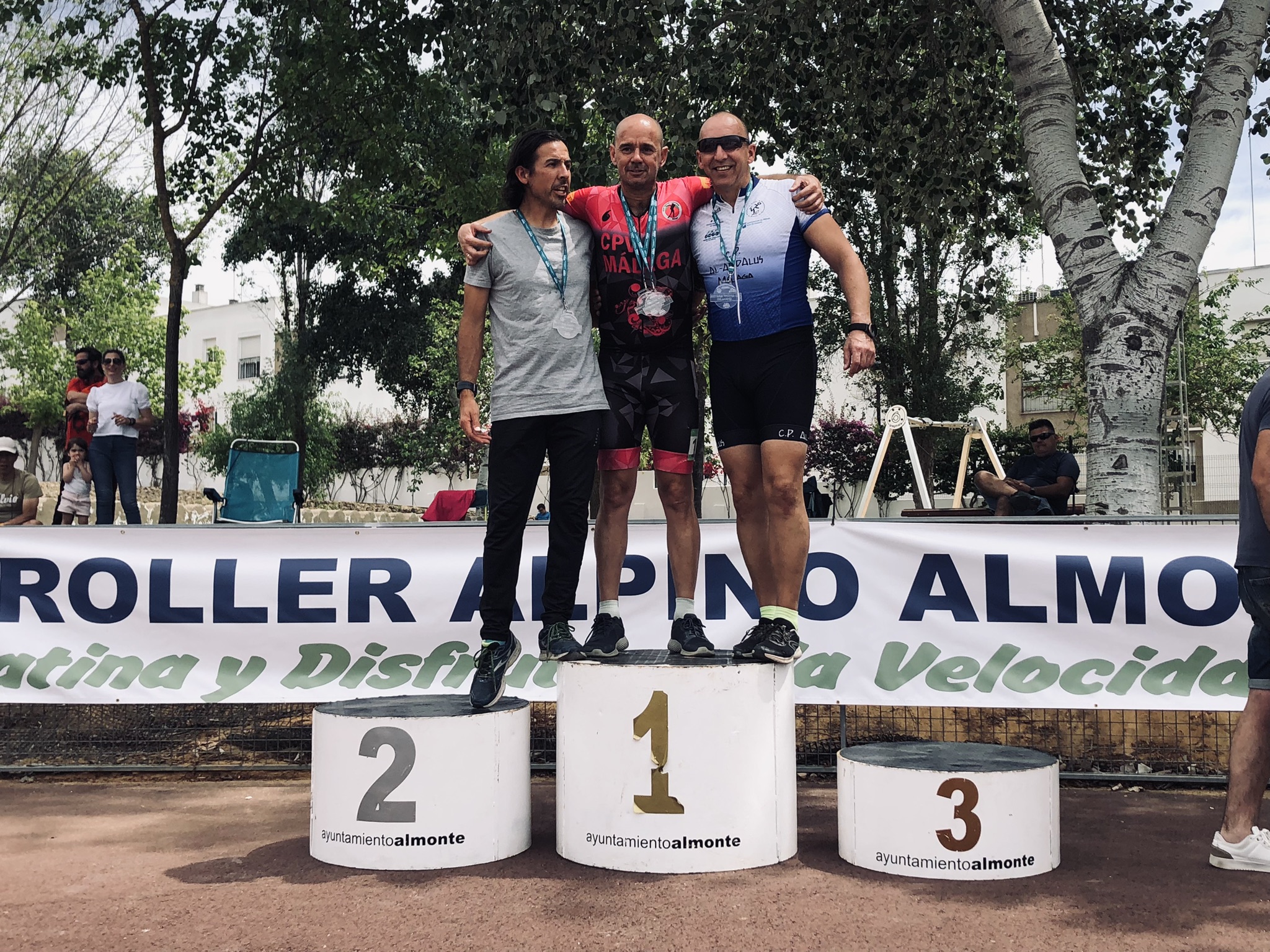 Lo mejor de todo fue que los esfuerzos de estos meses están dando sus frutos (¡¡¡los entrenamientos sirven para algo!!!), de los 8 participantes de CPV Málaga, 6 obtuvieron medallas en sus respectivas categorías. Belén Moreno fue 1ª en el Máster 50 del 21K; Javi Morales fue 2º en Máster 40 del 42K; Jorge Vitores Sr. fue 3º en Máster 40 del 21K; Jorge Vitores Jr. fue 1º en Juvenil del 21K (¡¡¡además quinto de la general!!!); Lucía Cañas fue 1ª en Alevín del 10K ; y cabe destacar a David Buitrago que fue 1º en Alevín del 10K y que viene de ganar hace dos semanas el 10K de la Maratón del Río Tajo.